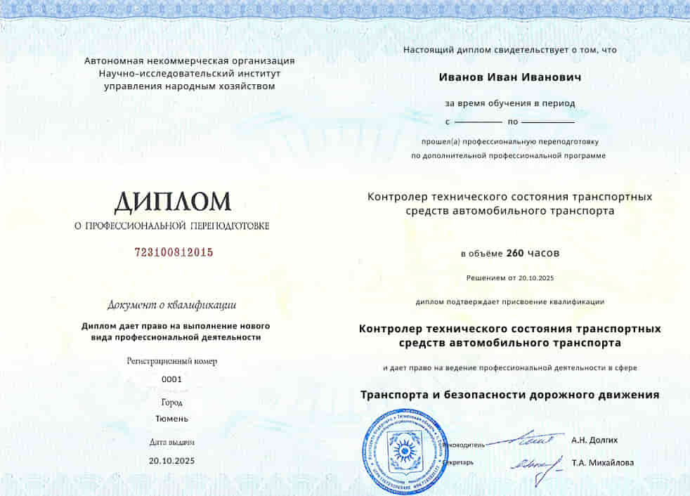 Пройдите обучение по востребованной профессии по специальности «Контролер технического состояния транспортных средств автомобильного транспорта», обучаясь на курсах повышения квалификации и профессиональной переподготовки в Институте безопасности дорожного движения АНО НИИ Управления под руководством одних из лучших преподавателей в отрасли.