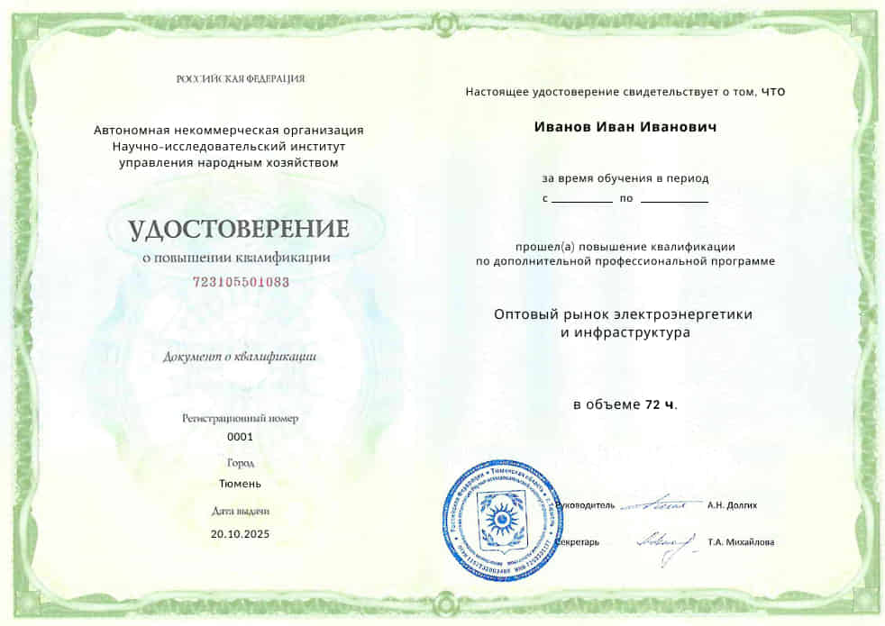 Пройдите обучение по востребованной профессии по специальности «Оптовый рынок электроэнергетики и инфраструктура» обучаясь на курсах повышения квалификации и профессиональной переподготовки в Строительства и энергетики АНО НИИ Управления под руководством одних из лучших преподавателей в отрасли.