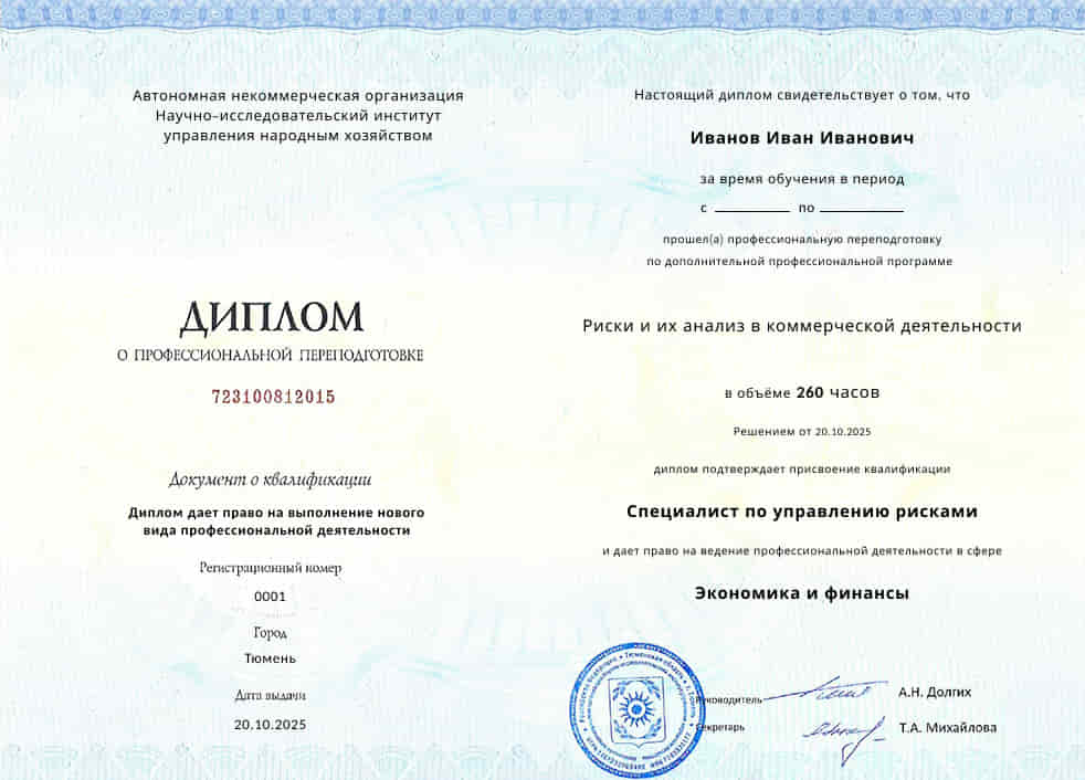 Пройдите обучение по востребованной профессии по специальности «Риски и их анализ в коммерческой деятельности» обучаясь на курсах повышения квалификации и профессиональной переподготовки под руководством одних из лучших преподавателей в отрасли.