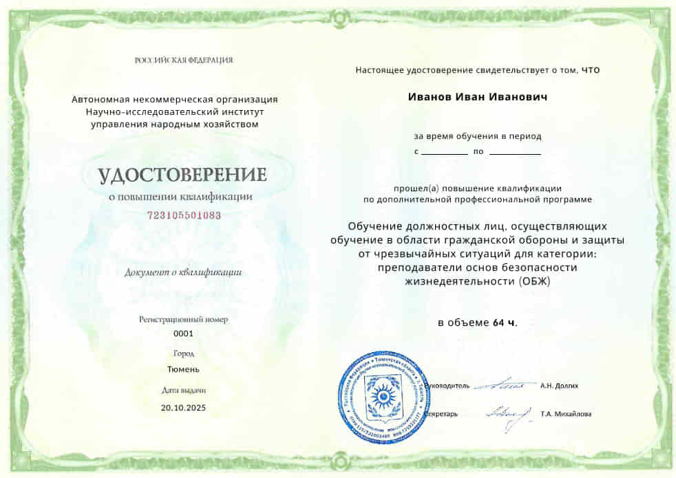 Удостоверение о повышении квалификации