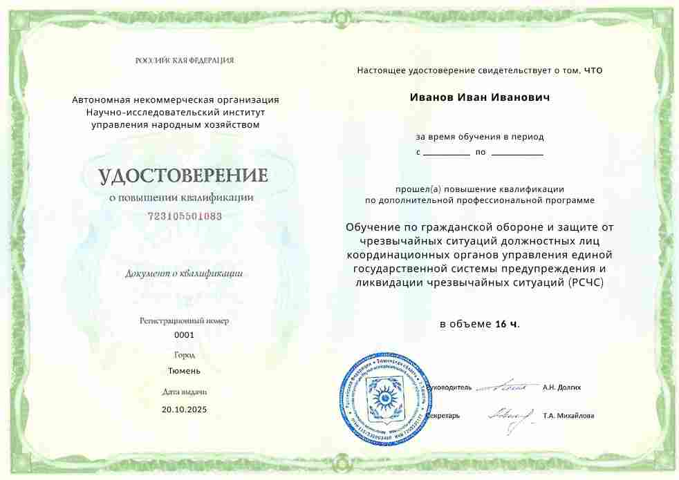 Совершенствование компетенций и повышение профессионального уровня по гражданской обороне и защите от чрезвычайных ситуаций должностных лиц координационных органов управления единой государственной системы предупреждения и ликвидации чрезвычайных ситуаций (РСЧС).