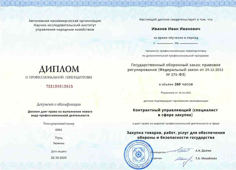 Структурное образовательное подразделение, осуществляющее обучение: Институт государственных закупок