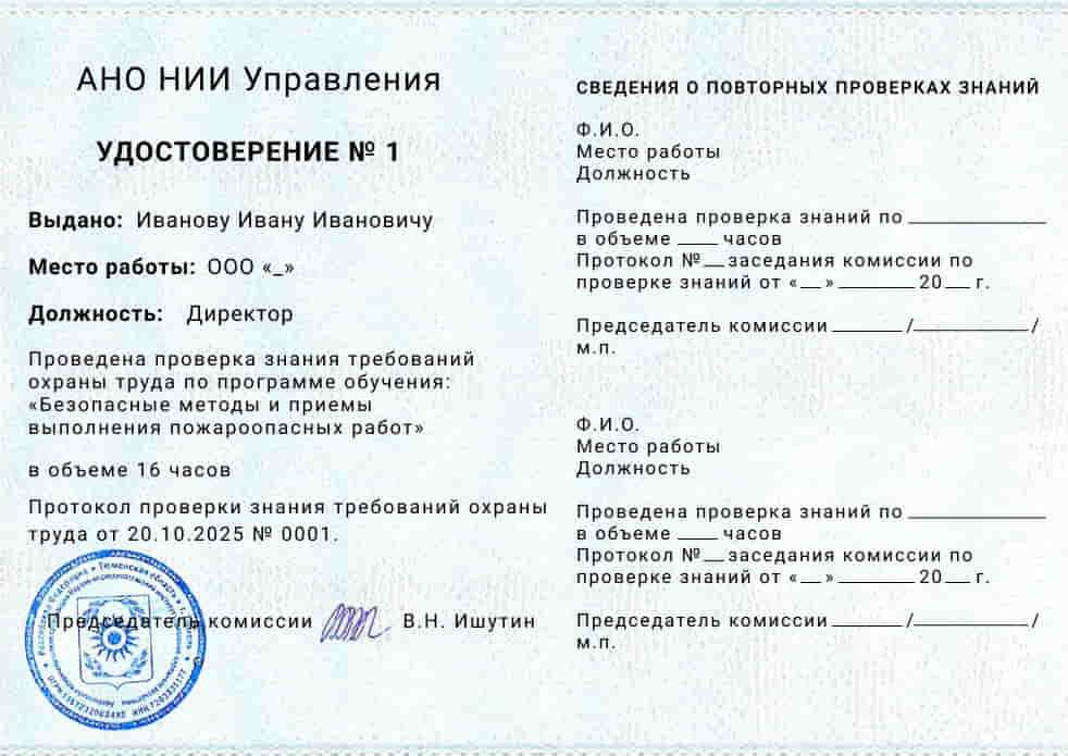 АНО НИИ Управления проводит обучение по программе «Обучение безопасным методам и приемам выполнения работ повышенной опасности, к которым предъявляются дополнительные требования в соответствии с нормативными правовыми актами, содержащими государственные нормативные требования охраны труда (Безопасные методы и приемы выполнения пожароопасных работ)» в соответствии с Постановлением Правительства РФ от 24.12.2021 № 2464 «О порядке обучения по охране труда и проверки знания требований охраны труда». Обучающиеся получат знания и умения от квалифицированных преподавателей в данной сфере.