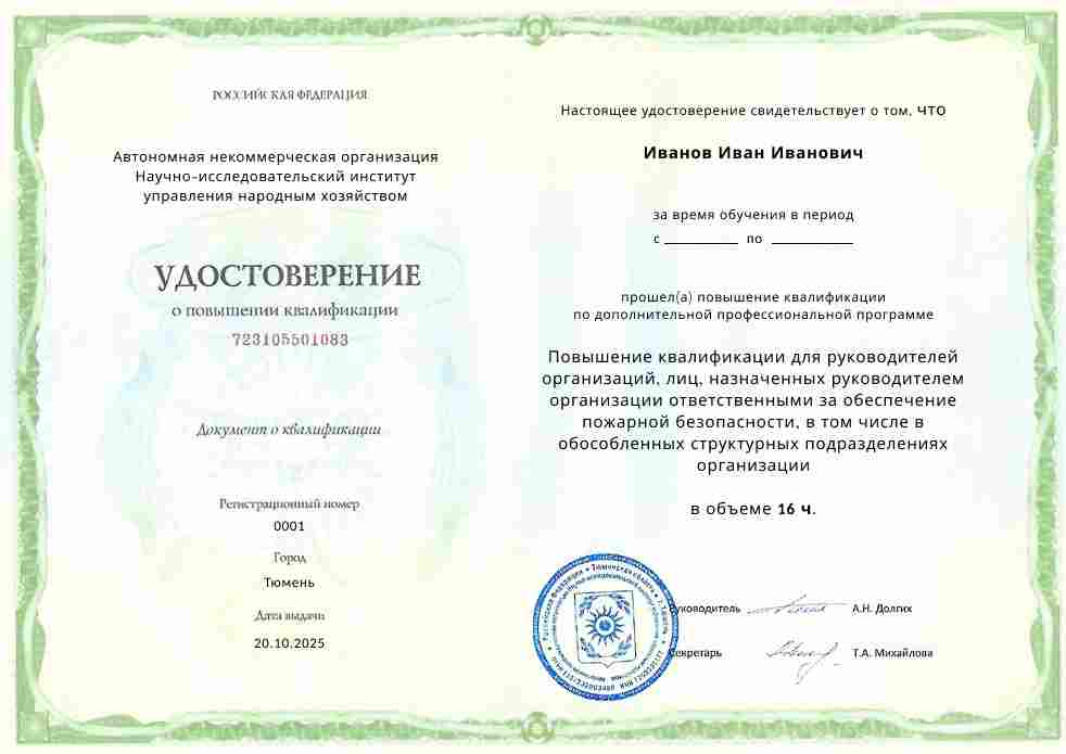 Пройдите обучение по востребованной программе «Повышения квалификации для руководителей организаций, лиц, назначенных руководителем организации ответственными за обеспечение пожарной безопасности, в том числе в обособленных структурных подразделениях организации», обучаясь на курсах повышения квалификации в Институте пожарной безопасности под руководством одних из лучших преподавателей в отрасли.