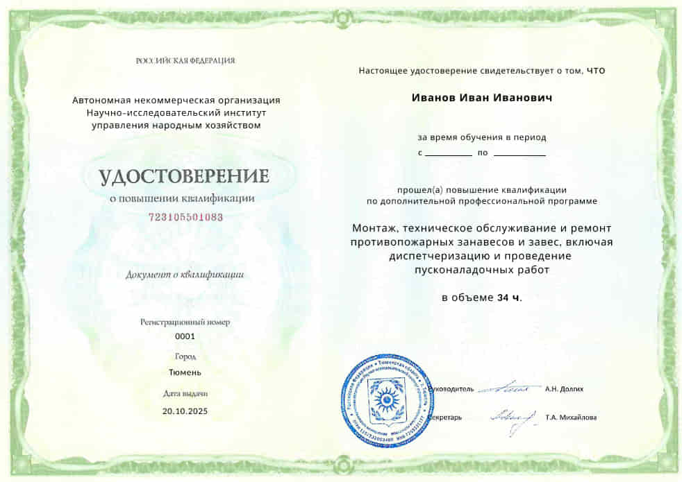 Пройдите обучение по востребованной программе «Монтаж, техническое обслуживание и ремонт противопожарных занавесов и завес, включая диспетчеризацию и проведение пусконаладочных работ», обучаясь на курсах повышения квалификации в Институте пожарной безопасности под руководством одних из лучших преподавателей в отрасли.