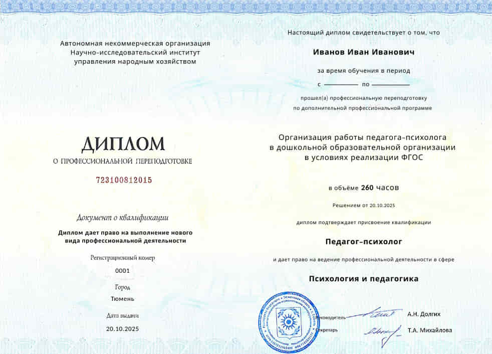 Диплом о профессиональной переподготовке