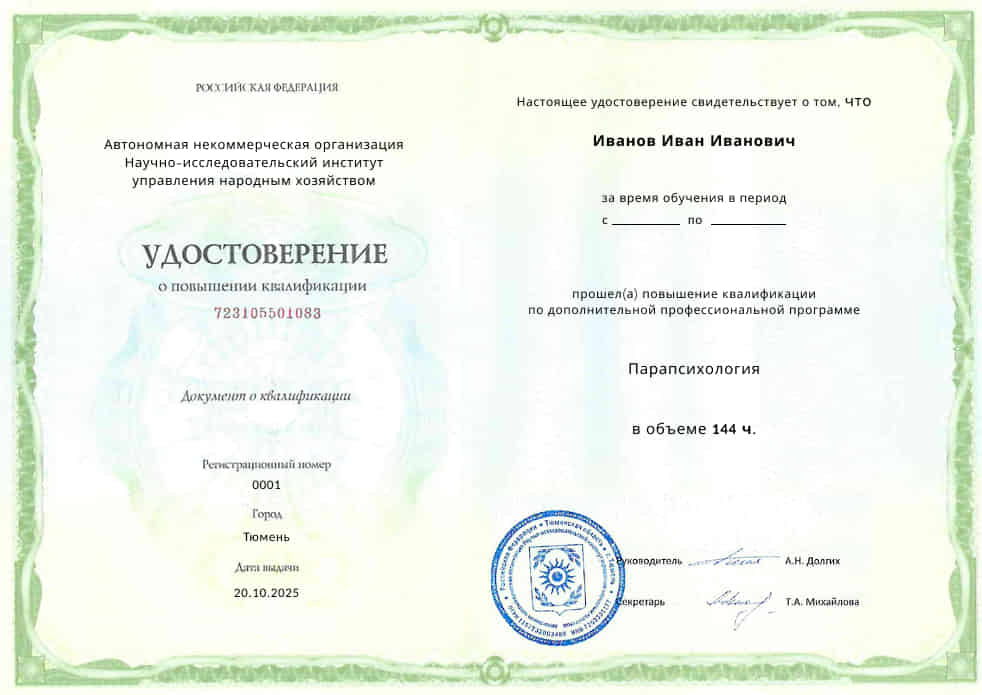 Пройдите обучение по востребованной профессии по специальности «Парапсихология», обучаясь на курсах повышения квалификации и профессиональной переподготовки в Институте психологии АНО НИИ Управления под руководством одних из лучших преподавателей в отрасли.