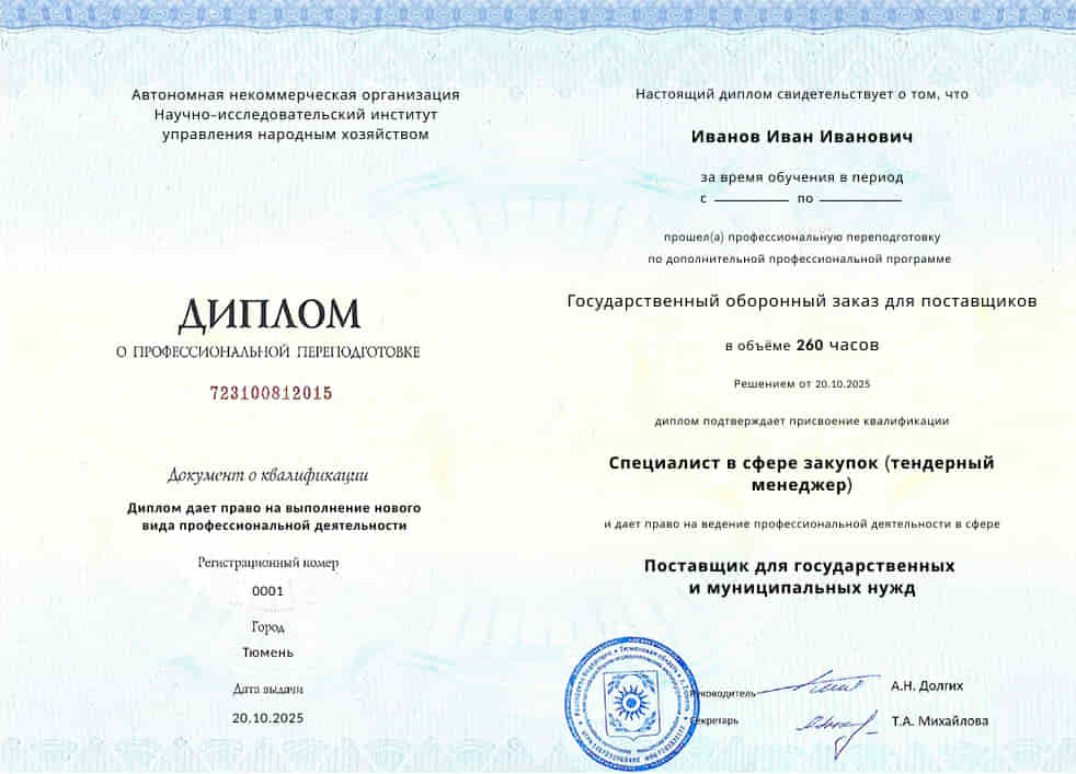 Структурное образовательное подразделение, осуществляющее обучение: Институт государственных закупок