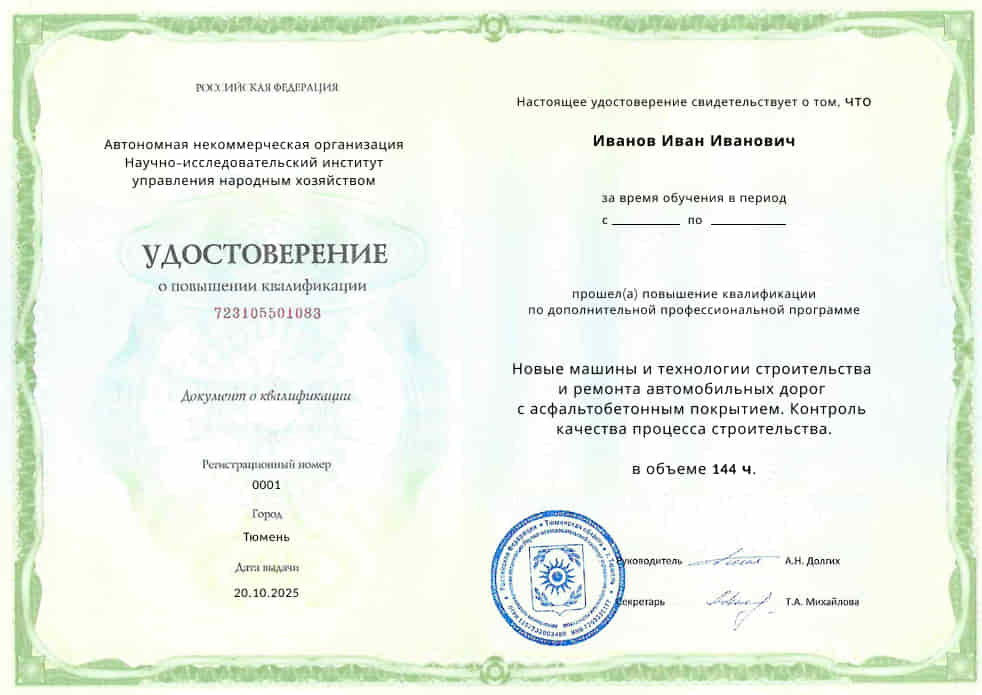 Пройдите обучение по востребованной профессии по специальности «Новые машины и технологии строительства и ремонта автомобильных дорог с асфальтобетонным покрытием. Контроль качества процесса строительства» обучаясь на курсах повышения квалификации в Институте государственных закупок под руководством одних из лучших преподавателей в отрасли.