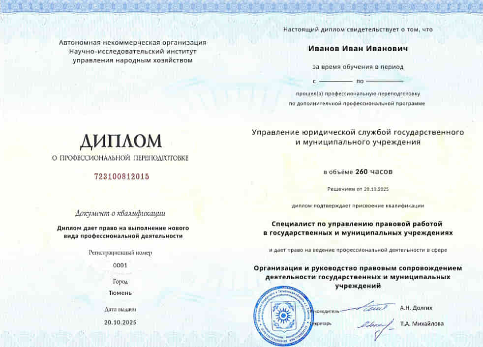Специалист по управлению правовой работой в государственных и муниципальных учреждениях