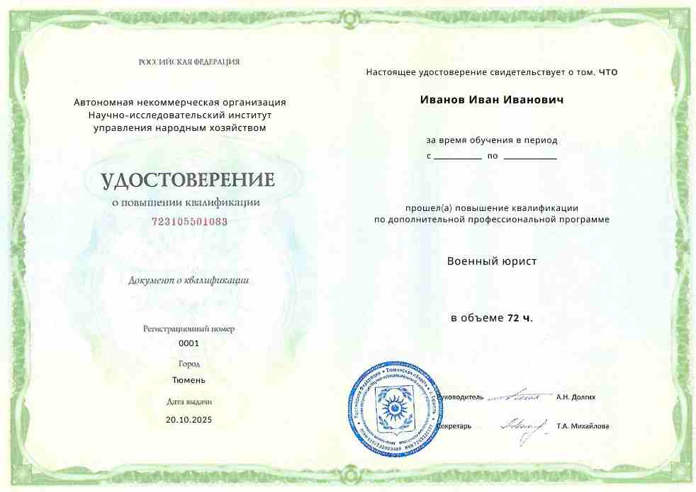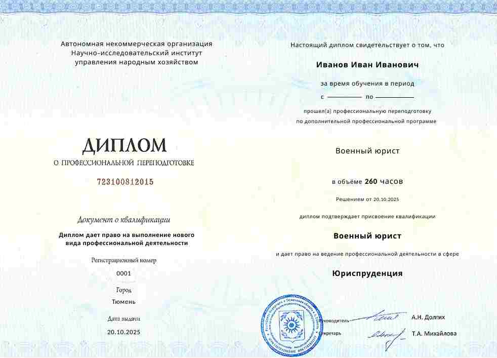 Пройдите обучение по востребованной профессии по специальности «Военный юрист», обучаясь на курсах повышения квалификации и профессиональной переподготовки в юридическом институте под руководством одних из лучших преподавателей в отрасли.