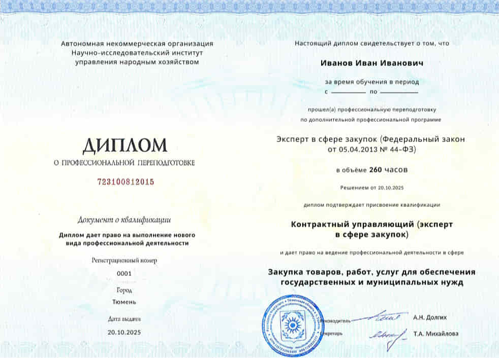 Структурное образовательное подразделение, осуществляющее обучение: Институт государственных закупок