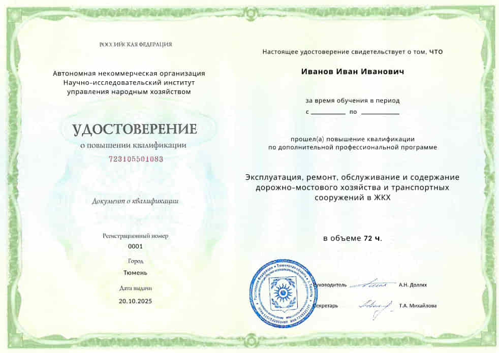 Пройдите обучение по программе «Эксплуатация, ремонт, обслуживание и содержание дорожно-мостового хозяйства и транспортных сооружений в ЖКХ» обучаясь на курсах повышения квалификации в Институте государственных закупок под руководством одних из лучших преподавателей в отрасли.
