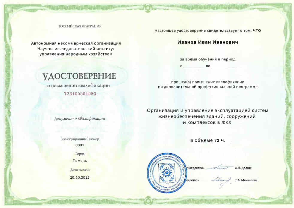 Повышение квалификации обучающихся в сфере организации и управления эксплуатацией систем жизнеобеспечения зданий, сооружений и комплексов жилищно-коммунального хозяйства.